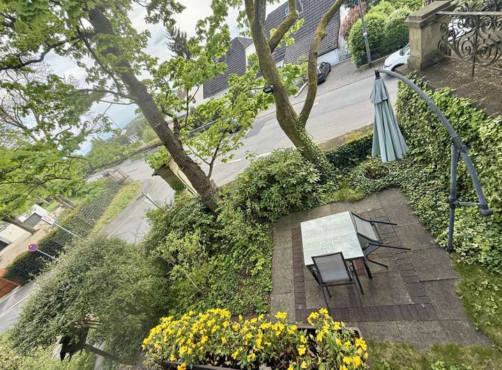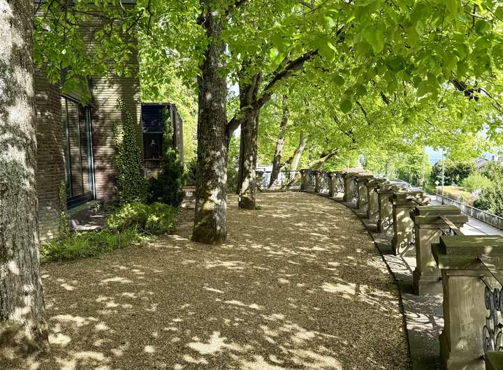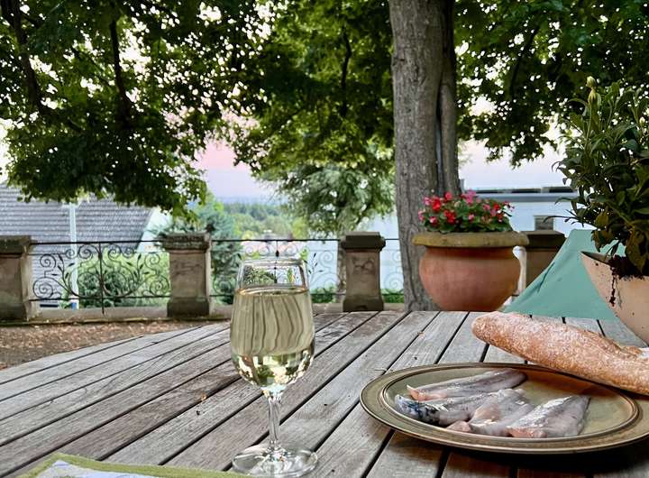 - Südterrasse mit Rheinblick unter alten Bäumen