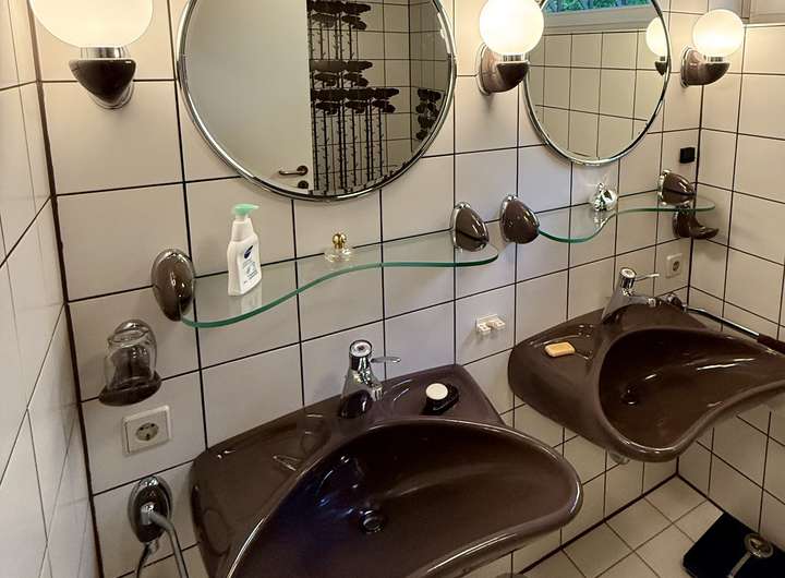 - Bad1 mit Badewanne, zwei Waschbecken und Bidet