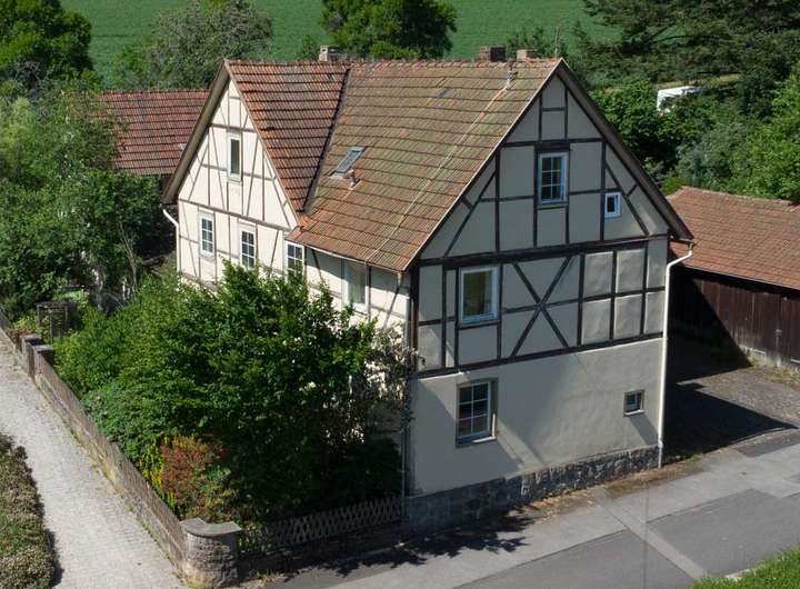 Das Haus bietet auf drei Etagen zwei abgeschlossene Wohneinheiten – ideal für Mehrgenerationenwohnen, die Kombination aus Wohnen und Arbeiten oder als teilvermietbares Konzept. Die markante Fachwerkfassade verleiht dem Gebäude seinen unverwechselbaren, ländlichen Charme und erzählt von einer vergangenen Zeit, die darauf wartet, neu belebt zu werden. Der derzeitige Zustand ist teilsaniert – eine hervorragende Grundlage, um eigene Vorstellungen mit handwerklichem Geschick oder professioneller Hilfe zu verwirklichen. Vieles ist möglich, wenig ist vorgegeben.