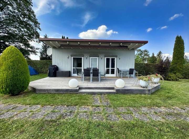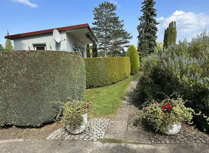 Das Grundstück ist bebaut mit einem Freizeithäuschen, das 2016 in Holzständerbauweise errichtet wurde, als Freizeitdomizil. Im Inneren verfügt es über eine durchdachte, moderne Raumaufteilung, gleich einem Appartement. Das Badezimmer ist ausgestattet mit Dusche und Campingtoilette. Mobiliar und Ausstattung kann gerne übernommen werden, sodass eine sofortige Nutzung möglich ist.