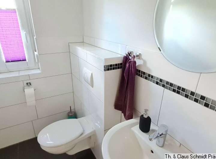 Das Vollbad und das Gäste-WC bieten optimale Voraussetzungen für Familienleben und Besuch. Der Hauswirtschaftsraum rundet das Angebot ab und sorgt dafür, dass auch praktische Dinge ihren Platz finden.