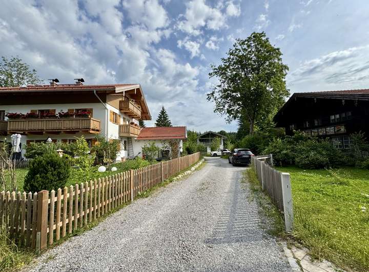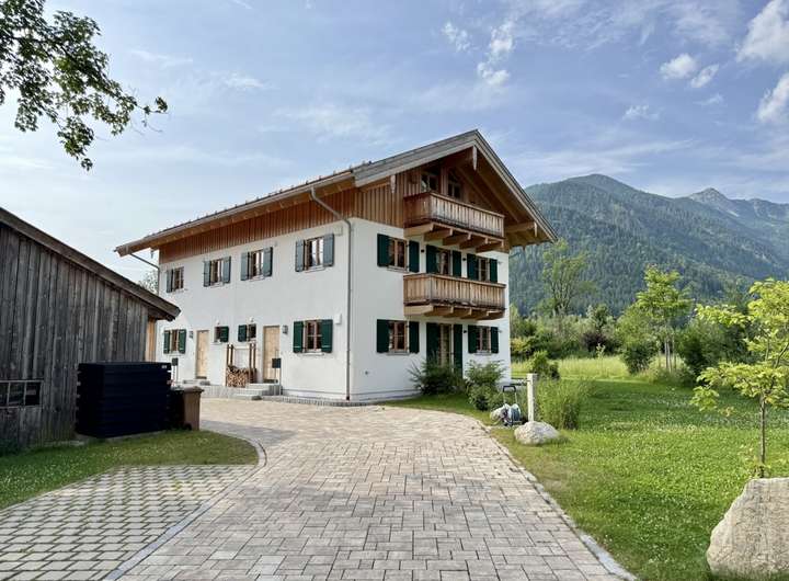 Die Nachbarschaft ist geprägt von stilvoller neuer bayerischer Architektur – ein harmonisches kleines Gefüge mit Charakter.