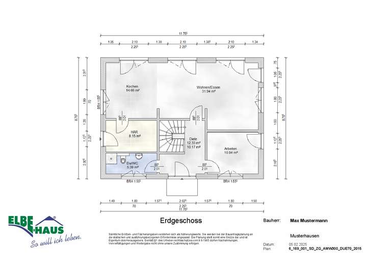 Dieses innovative Elbe-Haus® wird in massiver Bauweise von qualifiziertem Fachpersonal errichtet. Wir planen und projektieren nach Ihren Vorstellungen und Wünschen und somit ist wirklich jedes Haus einzigartig. Beachten Sie bitte, dass das abgebildete Haus lediglich ein Bebauungsbeispiel ist. Das Grundstück kann unter Berücksichtigung der örtlichen Bauvorschriften mit Ihrem Wunschhaus von Elbe-Haus® errichtet werden.