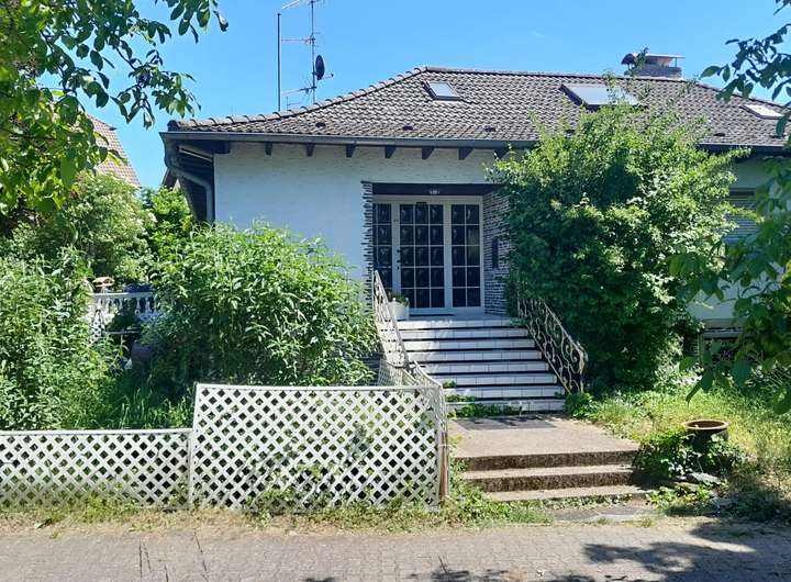 Es handelt sich um einen eingeschossigen Winkelbungalow mit vollständigem Keller.