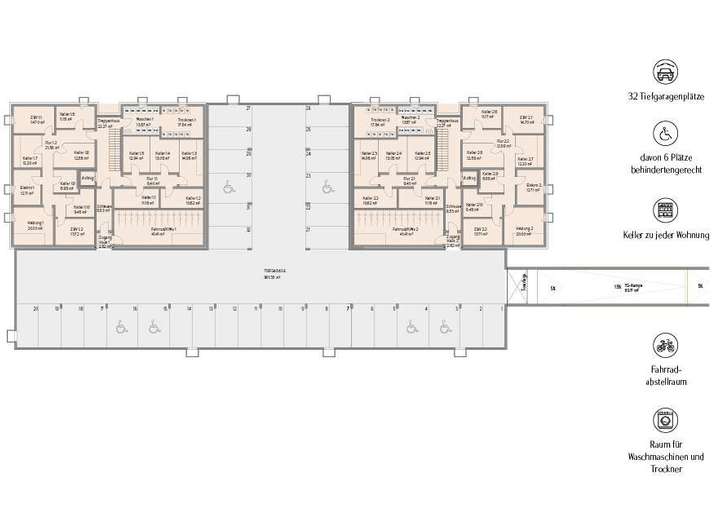 • Ein eigener Kellerraum / Abstellraum und Tiefgaragenstellplatz gehören zur.