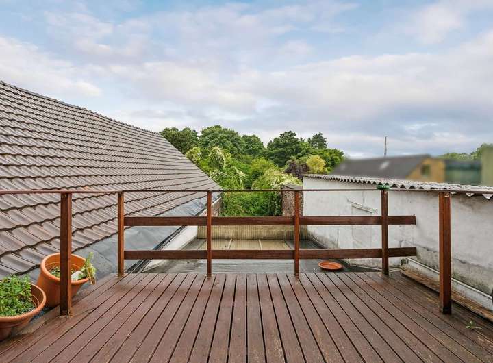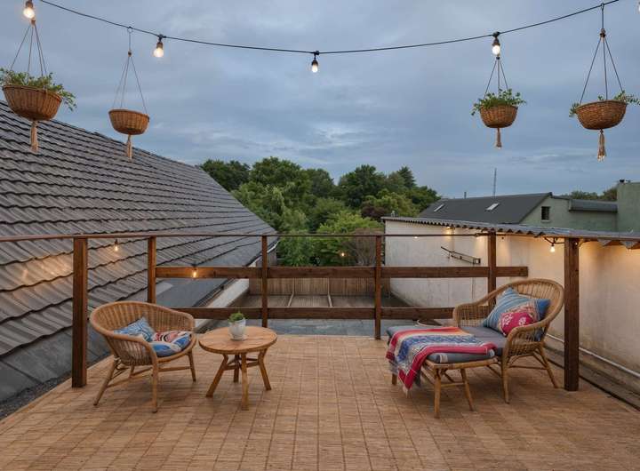 Dachterrasse mit Blick in den begrünten Innenhof