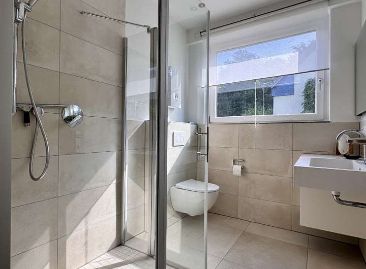 - Badezimmer: Modernes Tageslichtbad mit bodentiefer Dusche (neu 2022) sowie separates Gäste-WC.