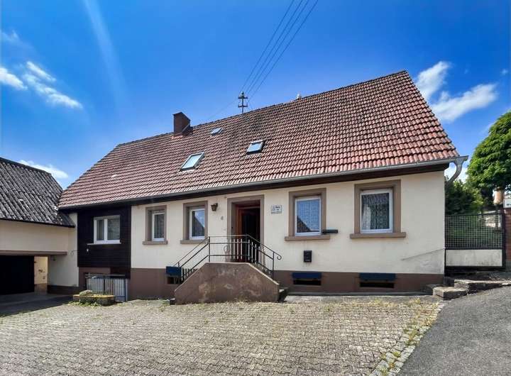 Dieses Wohnhaus wurde ca. 1848 auf einem idyllisch gelegenen 1.323 m² großen Grundstück angrenzend zur Kirche hin in Jakobsweiler am Fuße des Donnersbergs errichtet.