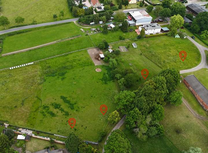 Es handelt sich um vier unterschiedlich große Baugrundstücke in Hanglage mit einem tollen Blick ins Grüne in Tressentin, einem Ortsteil der Stadt Marlow. Direkt gegenüber liegt das ehemalige Gutshaus in einem historischen Dreiseitenhof, welcher in der Denkmalliste geführt ist und den Dorfmittelpunkt darstellt. An den Grundstücksgrenzen liegen die Medien wie Wasser, Strom und Glasfaser an. Eine Kleinkläranlage muss auf dem jeweiligen Grundstück installiert werden. Eine Zufahrt auf die Grundstücke erfolgt über die neu ausgebaute Dorfstraße. Durch die schon erfolgte Erschließung von Baugrundstücken und den Bau von Eigenheimen entwickelt sich der Ortsteil Tressentin mit seinen rund 60 Einwohnern gerade zu einem jungen Dorf. Durch die Nähe zu den Städten Ribnitz-Damgarten und Marlow erreichen Sie in kürzester Zeit Einkaufsmöglichkeiten, Schulen, Arztpraxen oder Freizeitangebote wie den Vogelpark Marlow oder das Hallenschwimmbad in Ribnitz-Damgarten. Der nahe gelegene Fluss Recknitz bietet beste Möglichkeiten für Angler und Wassersportler.