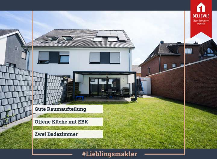 Diese moderne Doppelhaushälfte aus dem Jahr 2019 überzeugt durch eine durchdachte Raumaufteilung, hochwertige Ausstattung und eine energieeffiziente Bauweise. Auf rund 135 m² Wohnfläche erstreckt sich ein ideales Zuhause für Paare oder Familien, das keine Wünsche offenlässt. Das Haus befindet sich auf einem ca. 235 m² großen Grundstück und verfügt über eine Garage sowie einen zusätzlichen Stellplatz direkt davor.