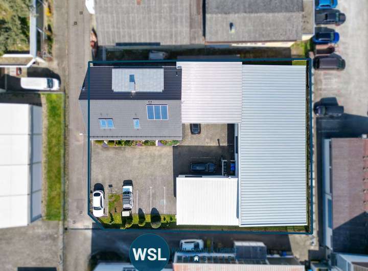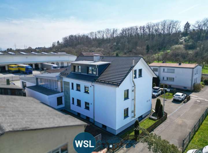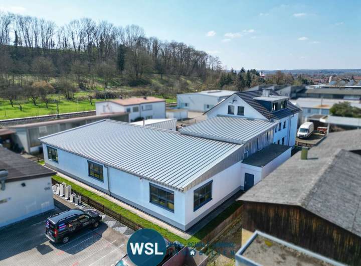 Auf einem Gesamtgrundstück von ca. 1.167 m² befindet sich diese vielseitig nutzbare Immobilie, bestehend aus einer modernen Gewerbehalle und einem umfassend modernisierten Wohngebäude mit drei Wohneinheiten, großer Terrasse im Obergeschoss und Doppelgarage.