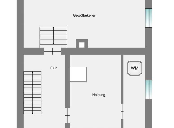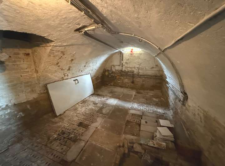 Im Gartengeschoss befindet sich ein Kellerraum mit Gasheizung und Kabelanschluss, sowie ein kleiner Raum für die Waschmaschine. Typisch für das Baujahr beinhaltet das Haus einen Gewölbekeller mit Naturboden.