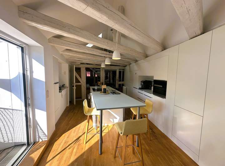 Diese Maisonette-Wohnung mit Loft-Charakter verbindet historischen Charme mit moderner Wohnqualität. Das Gebäude aus dem 15. Jahrhundert wurde 2022 umfassend modernisiert und energieeffizient auf KfW-55-Standard gebracht – Tradition trifft auf zeitgemäße Technik.