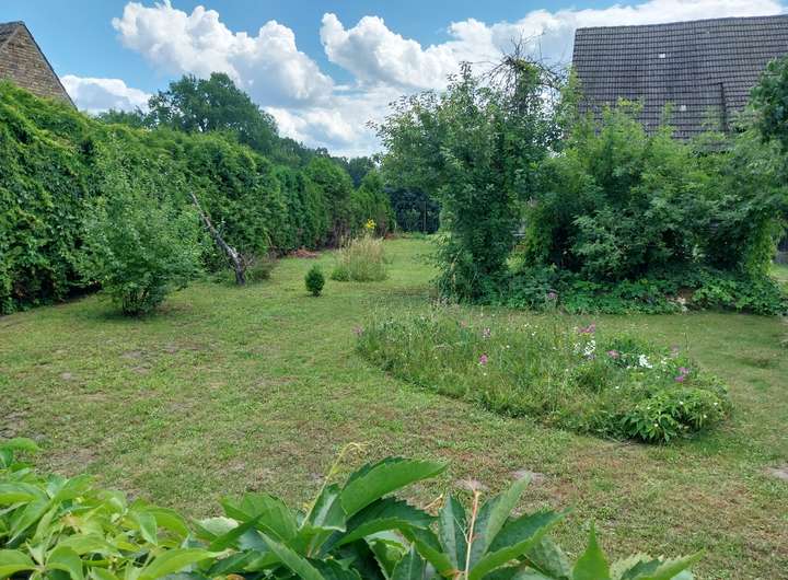 Das Grundstück hat eine Größe von ca. 740 m². Es ist etwas schmaler geschnitten, ca. 14m breit, da es als Teilgrundstück aus einem ursprünglich größeren Gesamtgrundstück hervorgegangen ist.