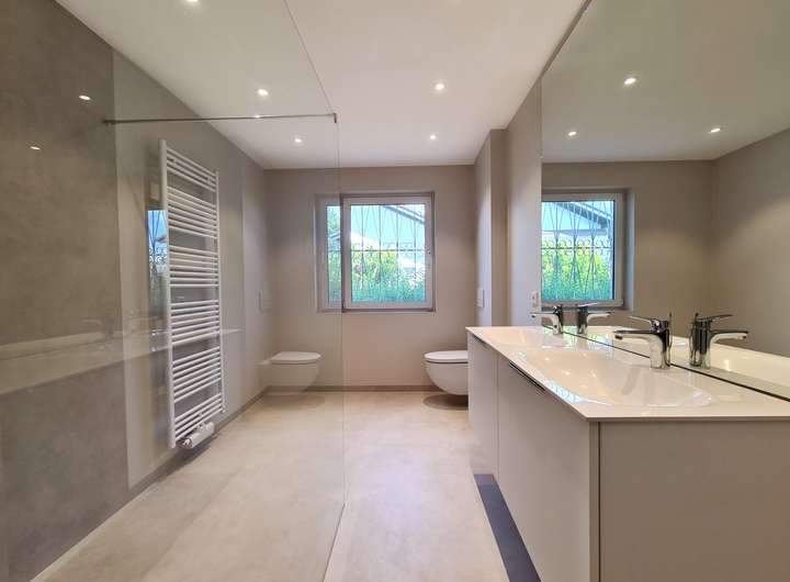 - Tageslichtbad mit ebenerdiger Dusche und Doppelwaschtisch (hoch moderner Standard/Erstbezug!)