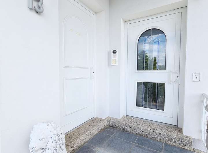 Wohnen und Arbeiten greifen harmonisch ineinander: Zwei Hauseingänge ermöglichen eine separate Nutzung, trotzdem sind beide Bereiche verbunden, sodass die Wege zwischen Ihnen kurz bleiben. Hinter der linken Haustür stehen ein Empfangsbereich mit Flur, ein Büro sowie ein Gäste-WC zur Verfügung. Erscheinungsbild und Aufteilung bieten sich für eine berufliche Nutzung an.