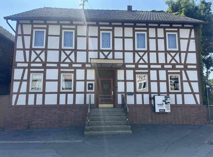 Zum Verkauf steht ein charmanter 3-Seitenhof in traditioneller Fachwerk- und Massivbauweise, der mit seinem besonderen ländlichen Flair und einem großzügigen Raumangebot überzeugt. Das Anwesen bietet ca. 180 m² Wohnfläche, die sich auf mehrere Zimmer verteilen. Die Immobilie befindet sich überwiegend im Zustand der 60er bis 80er Jahre und weist einen Modernisierungsbedarf auf. Dadurch eröffnet sich dem neuen Eigentümer die Möglichkeit, das Haus individuell zu gestalten und modernen Wohnkomfort mit historischem Charme zu verbinden.