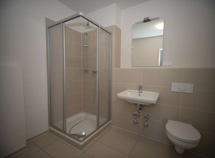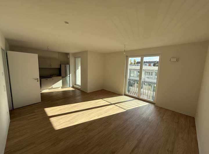 Ein Balkon erweitert den Wohnraum ins Freie. Die Wohnung ist barrierefrei gestaltet und bequem mit dem Aufzug erreichbar. Auf Wunsch kann ein Stellplatz angemietet werden, zudem stehen Fahrrad- und Kinderwagenkeller zur Verfügung. Die umweltfreundliche Beheizung erfolgt über Fernwärme (EVO).