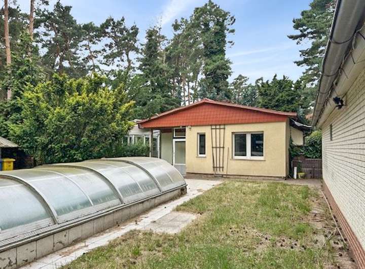 Romantischer Waldbungalow mit Wintergarten, Pool und großem Grundstück in Lindhorst bei Colbitz