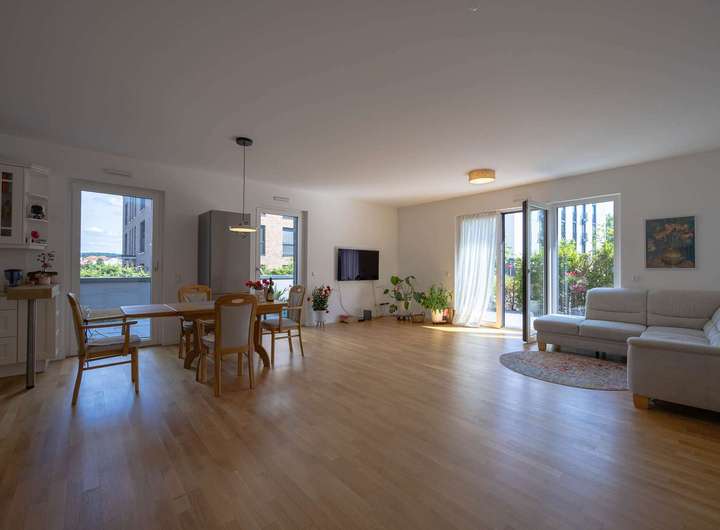 Das Highlight der Wohnung ist die großzügige Gartenfläche von 123 m², die zum Entspannen und Verweilen einlädt. Hier können Sie die warmen Sommerabende genießen und eine grüne Oase direkt vor Ihrer Tür haben.
