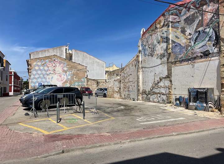Urbanes Baugrundstück mit einem Architektenprojekt (2009) zum Bau eines Mehrfamilien-Wohngebäudes mit 17 Wohneinheiten und Parkplatz, Es Castell, Menorca.