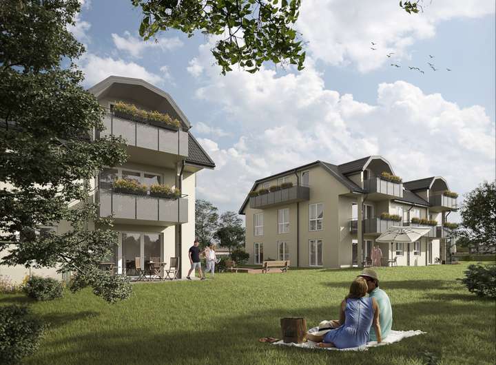 Die Lage dieser Obergeschosswohnung ist ideal: Sie befindet sich im zweiten, zurückversetzten Haus der Wohnanlage und bietet dadurch maximale Ruhe und Privatsphäre. Eingebettet in die umliegenden Gärten genießen Sie aus den Fenstern einen malerischen Blick ins Grüne – ein perfekter Rückzugsort zum Entspannen.