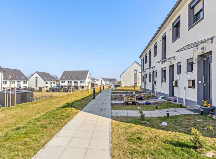 - Alle Reihenhäuser verfügen über Mietergärten mit Terrassen