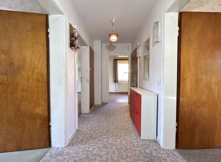 Das Haus befindet sich in ruhiger Ortsrandlage von Liedingen, angrenzend an Felder und Wiesen. Die Aufteilung lässt zu, dass das Haus als Ein- oder Zweifamilienhaus genutzt werden kann. Die Bäder und der Großteil der Versorgungsleitungen sind aus dem Baujahr. Einige Fenster wurden in den letzten Jahren ausgetauscht. Im Erdgeschoss befinden sich eine große Wohnküche, ein Wannenbad, ein Schlafzimmer und ein großes Wohn- / Esszimmer. Das Wohn- / Esszimmer waren ursprünglich zwei Räume. Wer gerne noch ein weiteres Zimmer im Erdgeschoss hätte, könnte diese Wand wieder einziehen. Weitere vier Räume und ein Wannenbad befinden sich im Obergeschoss. Einer der Räume verfügt über Küchenanschlüsse, aber kann z. B. auch als Kinderzimmer genutzt werden. Das Haus ist vollunterkellert. Hier stehen diverse Lagerräume zur Verfügung. Das Highlight des Hauses ist das große Grundstück. Hier können Kinder spielen, ein Teich oder ein Nutzgarten angelegt werden. Das ehemalige Stallgebäude ist in eine Garage und zwei weitere Abstellräume unterteilt, sodass ausreichend Platz für Fahrräder und Gartengeräte vorhanden ist.