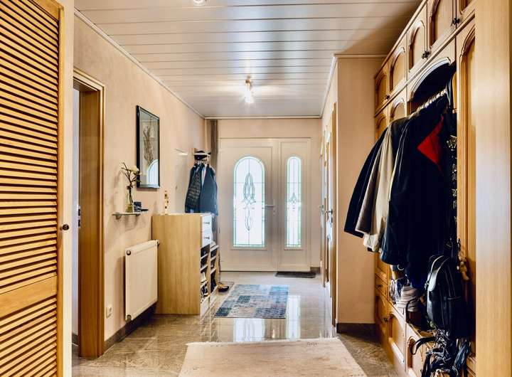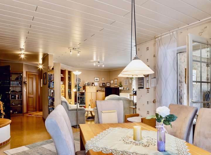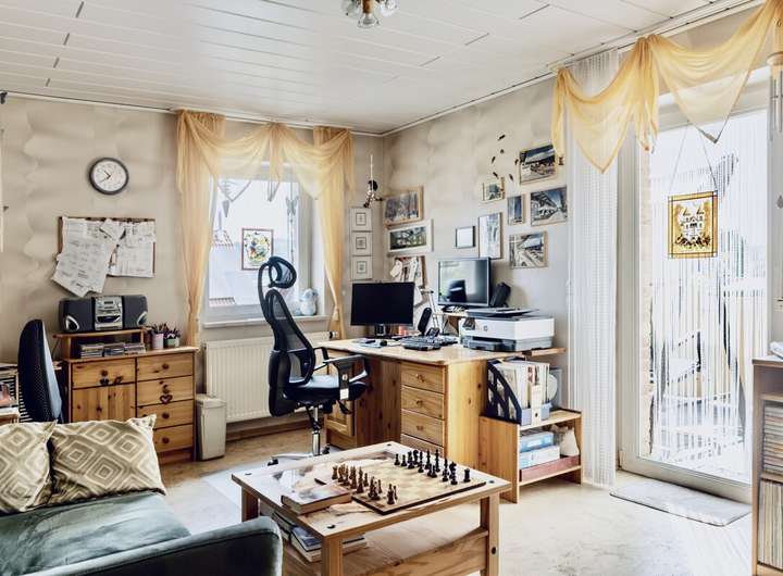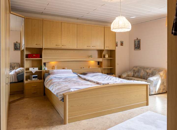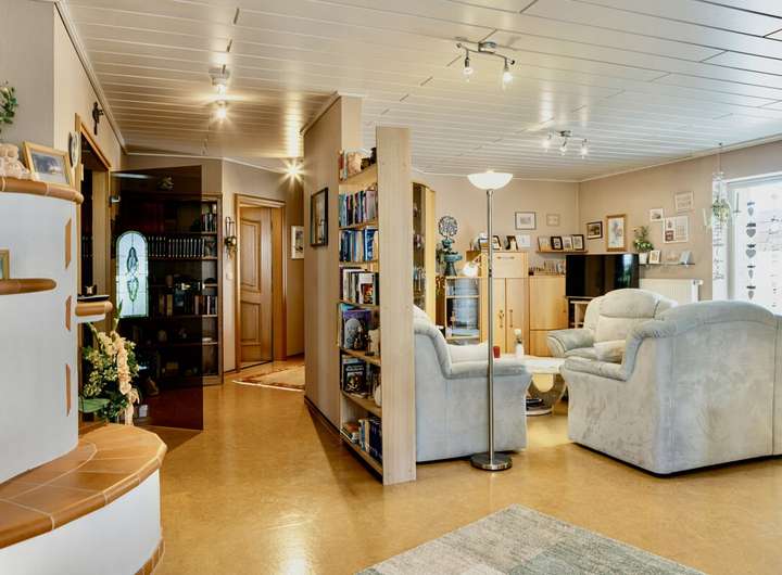 Dieses massiv gebaute Einfamilienhaus aus dem Jahr 2004 bietet durchdachten Wohnkomfort auf zwei Ebenen und eignet sich ideal für Familien oder Mehrgenerationenwohnen. Der helle Wohnbereich mit Zugang zum Garten schafft ein angenehmes Raumgefühl, während Fliesen- und Korkböden für eine warme Atmosphäre im Wohnraum sorgen.