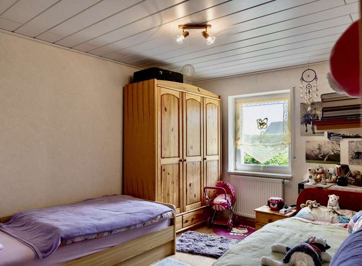 Eine zentrale Ölheizung mit 3000 Liter Heizölvorrat, doppelt verglaste Fenster, Aussenwand-Dämmung mit einer Klinkerfassade sowie ein Glasfaseranschluss sorgen für zeitgemäße Ausstattung. Der Garten teilt sich in einen vielfältig bepflanzten Nutzgarten und einer Sonnenterrasse vor dem Haus und lädt zum Entspannen und Gärtnern ein. Eine Einzelgarage mit elektrischem Toröffner rundet das Gesamtbild ab.