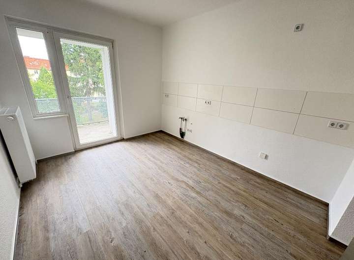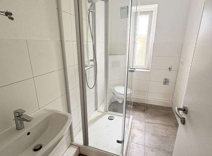Genügend Platz für einen Esstisch bietet die Küche, von hier gelangt man auf den Balkon. Das Badezimmer ist neu gefliest und mit einer Dusche, einem Handtuchheizkörper, Waschmaschinenanschluss und Fenster ausgestattet.