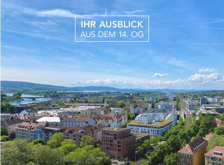 Eine Dachterrasse im 16. Obergeschoss ist für alle Bewohnerinnen und Bewohner des Hauses zugänglich und bietet einen atemberaubenden Ausblick. Genießen Sie von dort vielfältige Blicke in die Umgebung – den Bodensee, die historische Altstadt, die Insel Reichenau, die Berge und den Hegau.