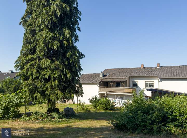 Abgerundet wird das Angebot durch den großzügigen Garten hinter dem Haus. Dieser ist auch über einen seitlich verlaufenden öffentlichen Weg zugänglich und kann damit von mehreren Parteien gemeinschaftlich genutzt werden – sei es als Erholungsoase, Spielbereich für Kinder oder individuell gestaltbarer Nutzgarten.