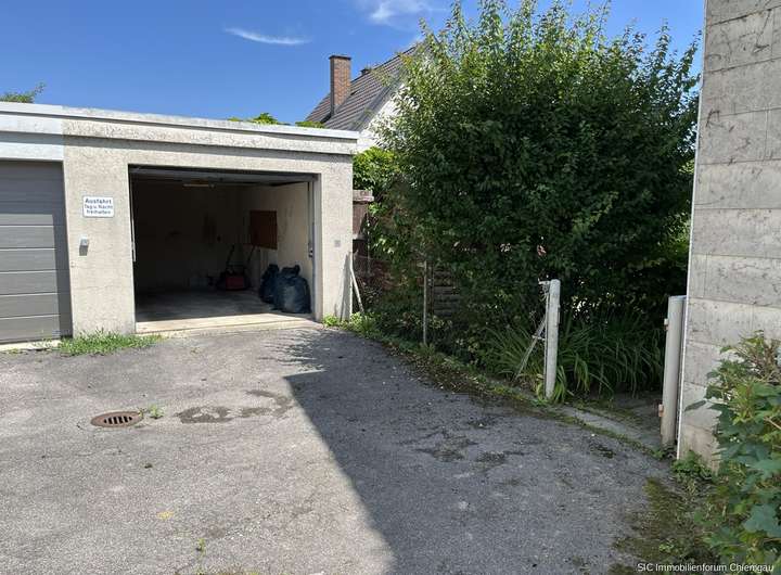 -Einzelgarage, Gartenhaus und Laube im Vorgarten