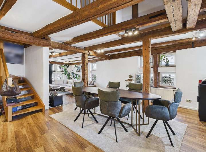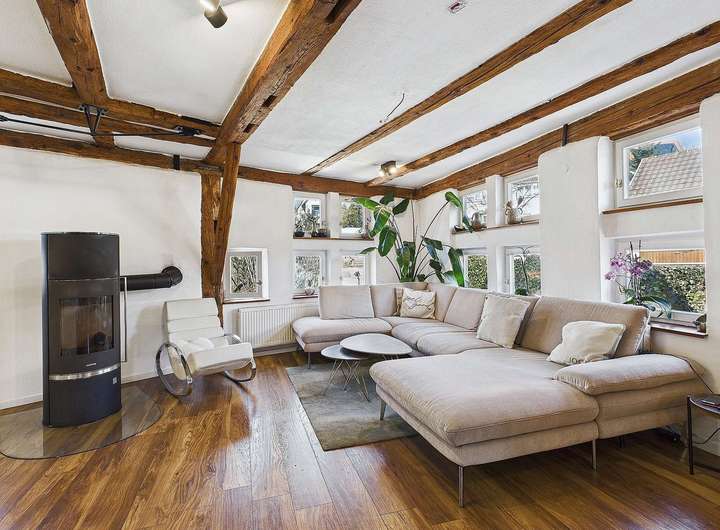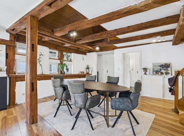+ Historisches Gebäude mit offenem Gebälk (Kernsaniert 1989), stilvoll freigelegt unter Berücksichtigung des Denkmalschutzes