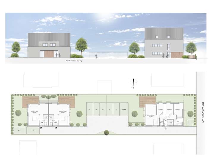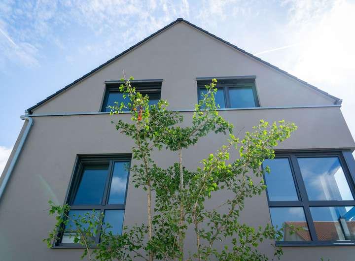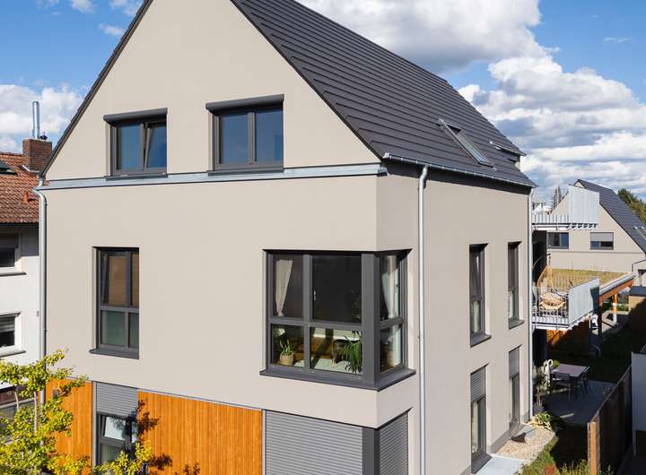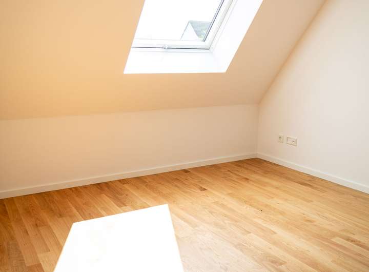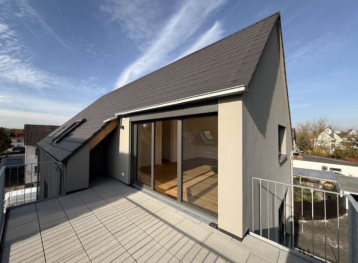 Hier entstand eine Dachgeschosswohnung in einer Wohnanlage mit einem Dreifamilienwohnhaus, einem Doppelhaus und einem Carport