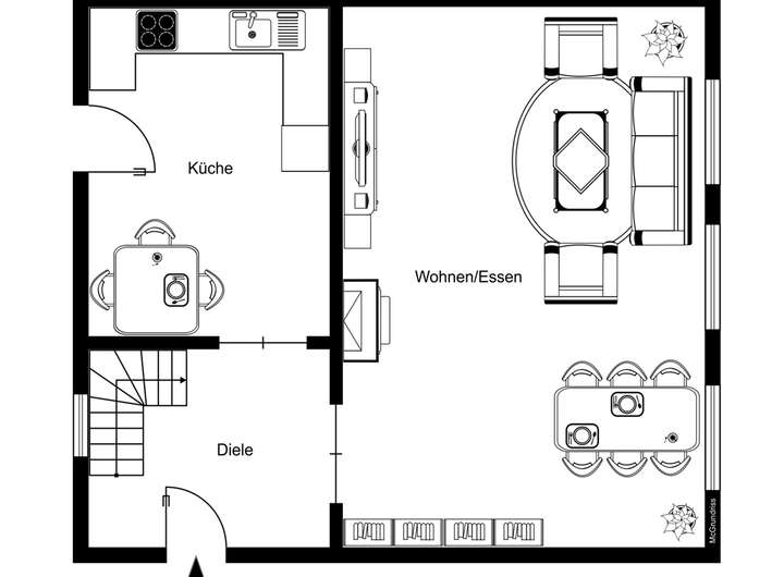 ++ Gemütlicher Wohn- und Essbereich im Erdgeschoss