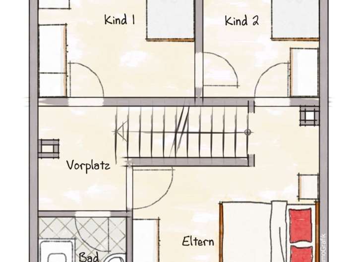- zwei Kinderzimmer sowie ein Schlafzimmer (teilweise als Durchgangszimmer nutzbar)