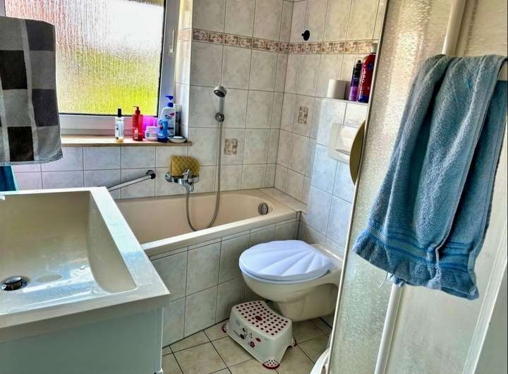 - Badezimmer mit Badewanne, Dusche und Waschbecken