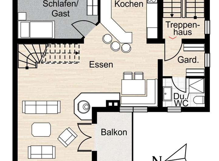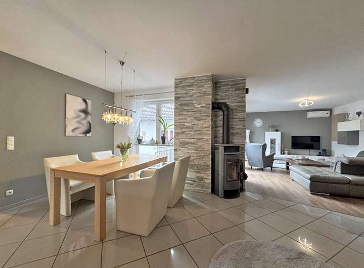 + Großzügiger Wohn-Essbereich mit Kamin