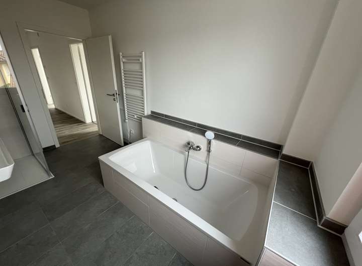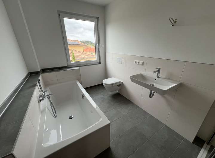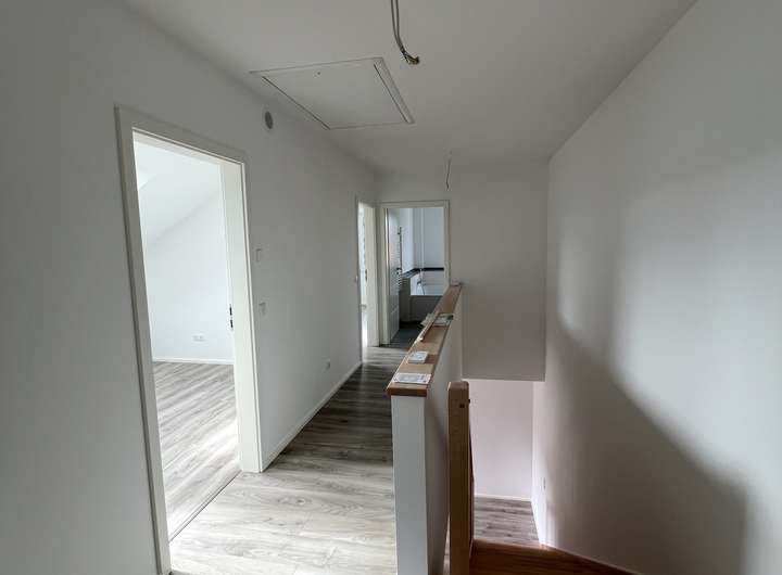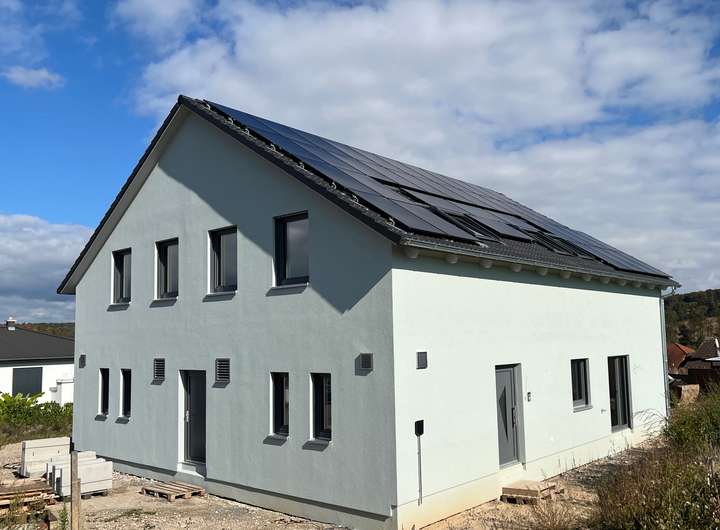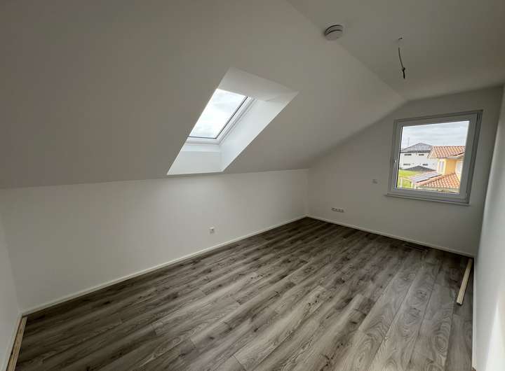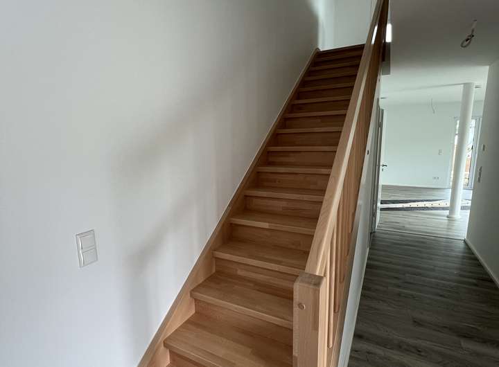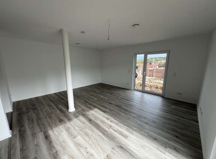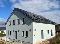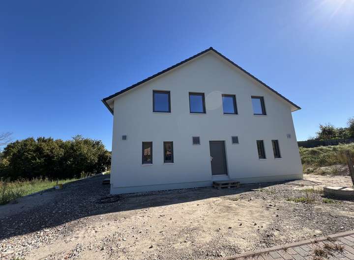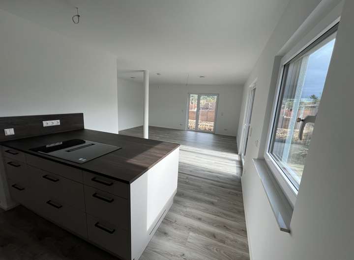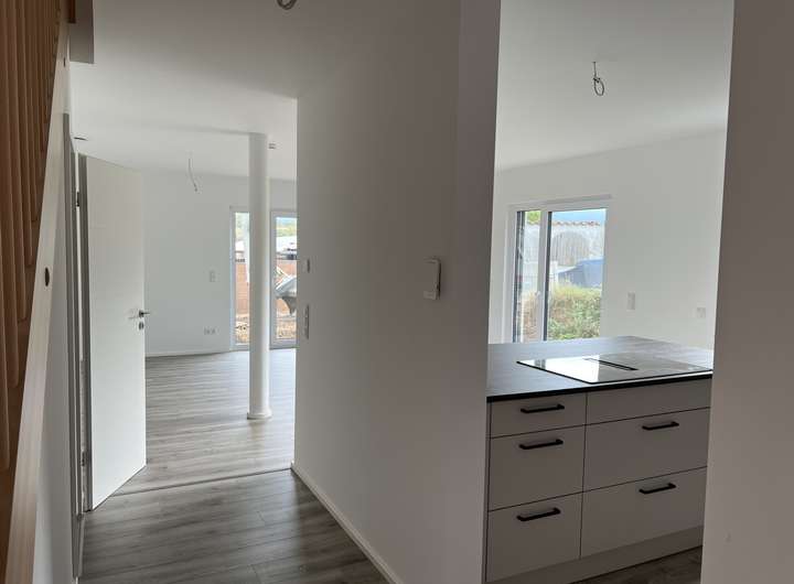 Bei dieser ansprechenden Immobilie handelt es sich um einen Erstbezug in eine zweistöckige Doppelhaushälfte. Das Haus besticht durch eine gehobene Innenausstattung und kann ab dem 1.12.2025 bezogen werden. Zu der Immobilie zählen 3 Schlafzimmer, ein Badezimmer, eine Abstellkammer, ein Hauswirtschaftsraum, ein Gäste WC, eine Küche sowie ein offenes Wohn- und Esszimmer. Auch das dazugehörige Grundstück lässt durch seine Großzügigkeit keine Wünsche offen. Ob Blumenstauden, Hochbeete für die Gemüsezucht oder Platz für die Kinder zum Spielen: Auf 300 Quadratmetern ist alles möglich. Zum Objekt gehören Annehmlichkeiten wie eine Einbauküche und 2 Stellplätze. Das Haus wurde 2025 erbaut und befindet sich in einer Sackgasse/Feldrandlage. Es ist ausgestattet mit einer Luft-Wasser-Wärmepumpe und einer PV Anlage. Das Haus wurde mit einer Energieeffizienzklasse KFW 40 QNG gebaut.