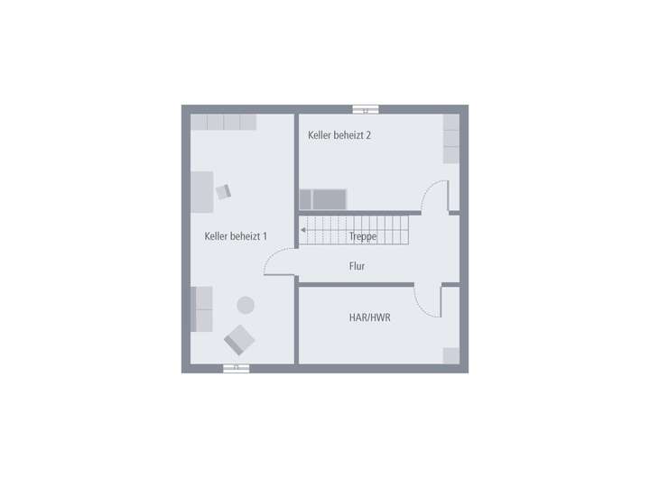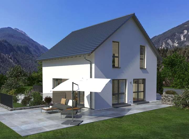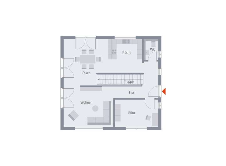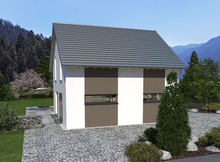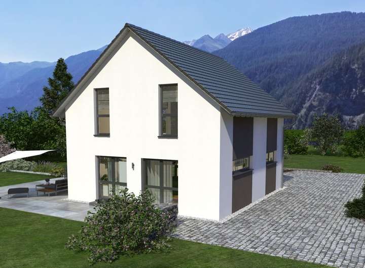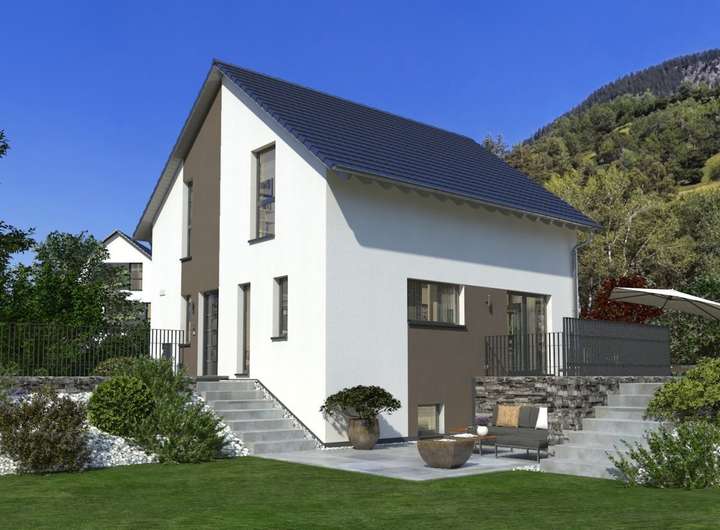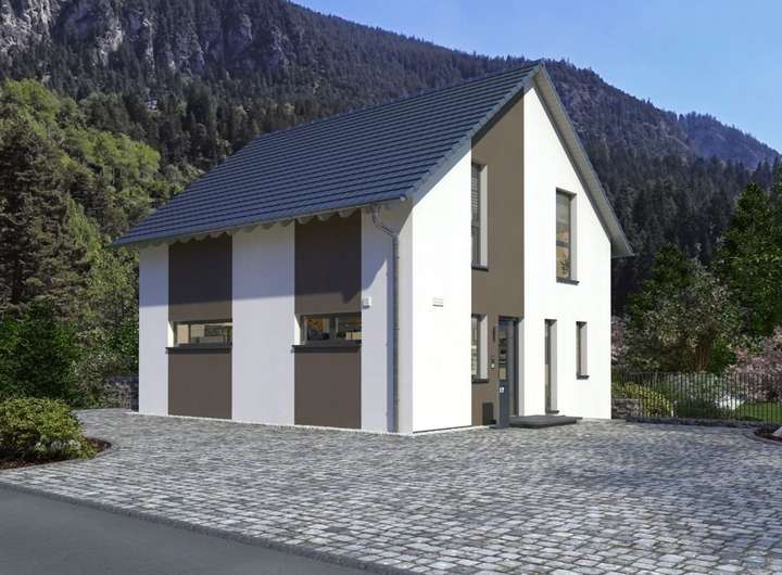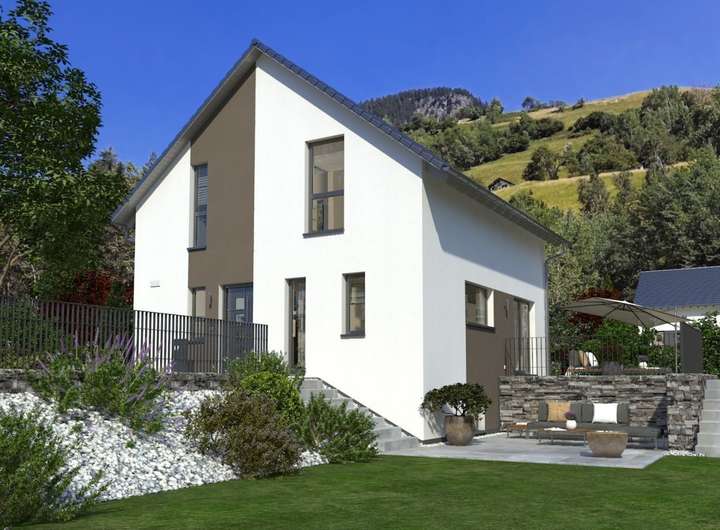 Auf den ersten Blick kaum erkennbar, punktet unser Design 10 K mit einem ganz besonderen Plus: Es verfügt über einen voll ausgebauten und beheizten Keller, der nicht nur Stauraum, sondern auch die Möglichkeit zur Einrichtung beispielsweise eines Büros bietet. Zudem befindet sich hier ein großer Hauswirtschaftsraum. Gemütlich und zugleich großzügig präsentiert sich unterdessen das Erdgeschoss. Diele und Wohn-Ess-Küche verschmelzen zu einer Einheit und vermitteln ein Gefühl von Weite, das die großen Fensterfronten noch zusätzlich unterstreichen. Die in der Mitte der Etage platzierte Treppe fungiert als Raumteiler und zugleich optisches Highlight. Ebenfalls Parterre befinden sich ein Büro/Gästezimmer sowie ein Gäste-WC. Im Obergeschoss entsteht durch die Dachschrägen ein Gefühl von Behaglichkeit. Hier stehen zwei großzügig geschnittene Kinderzimmer, ein Elternschlafzimmer mit direkt angeschlossenem Ankleidebereich sowie ein großes Wohlfühlbad mit Wanne, Dusche und WC zur Verfügung.