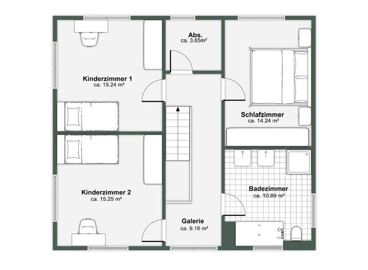- zwei Kinder- /Gästezimmer mit bodentiefen Kunststoff-Fenstern
