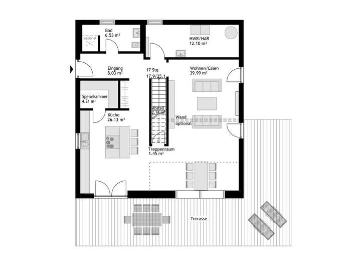 Diese Stadtvilla wird in der Ausbaustufe 3 - FastFertigPlus angeboten, was bedeutet, dass Sie aktiv am Innenausbau Ihres Hauses mitarbeiten können, während die haustechnischen Gewerke von einem Fachbetrieb durchgeführt werden.Zudem haben Sie die Möglichkeit, zwischen verschiedenen Ausbaustufen zu wählen, die Ihnen helfen, Ihr Budget optimal zu nutzen. Durch Eigenleistungen können Sie zusätzlich Geld sparen, und wir bieten Ihnen die Flexibilität, Ihr Haus entweder schlüsselfertig oder als Ausbauhaus zu erhalten. Bei Ihrer persönlichen STREIF-Bauberatung vor Ort werden alle Ihre Wünsche berücksichtigt und in die Planung integriert.