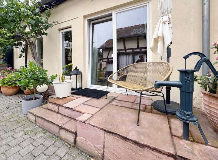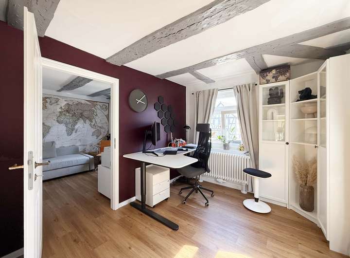 Diese ca. 1750 erbaute, denkmalgeschützte Hofreite wurde ab 2013 kontinuierlich saniert. Zur Erhaltung dieses hessischen Kulturdenkmals wurde u.a. das Dach neu aufgeschlagen und mit einer KfW-geförderten Unter- und Zwischensparrendämmung versehen. Die komplette Elektrik wurde erneuert, ebenso alle Heizkörper hochwertig ersetzt, die moderne Pelletheizung sorgt für ein angenehmes Wohngefühl. Der gesamte Grundriss bietet einer Familie ein wunderschönes Zuhause, der großzügige Wohn-Essbereich mit offener Küche wird zum gemütlichen familiären Treffpunkt. Auch der schön gestaltete Außenbereich mit Freisitz, Hof, Scheune und einem ca. 120m² großen Garten lässt Wohnträume wahr werden. Das Gießwasser für die Pflanzen liefert ein ca. 7m tiefer Brunnen. Der ehemalige Pferdestall kann noch z.B. zu einem Gästehaus ausgebaut werden, beherbergt aber schon heute ein Doppel-WC, was für Hofpartys und Kindergeburtstage sehr praktisch ist. Die 1834 erbaute Scheune inkl. saniertem Gewölbeweinkeller mit angrenzendem Garten bietet viel Raum für die Freizeitgestaltung – hier wurde sogar schon Hochzeit gefeiert.