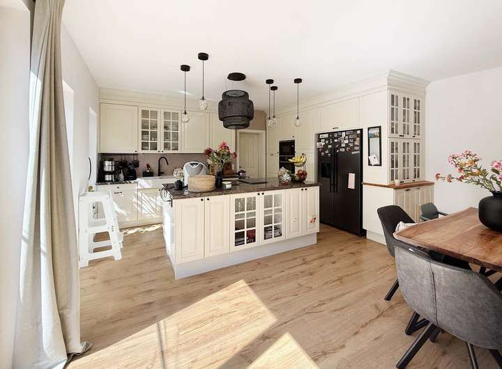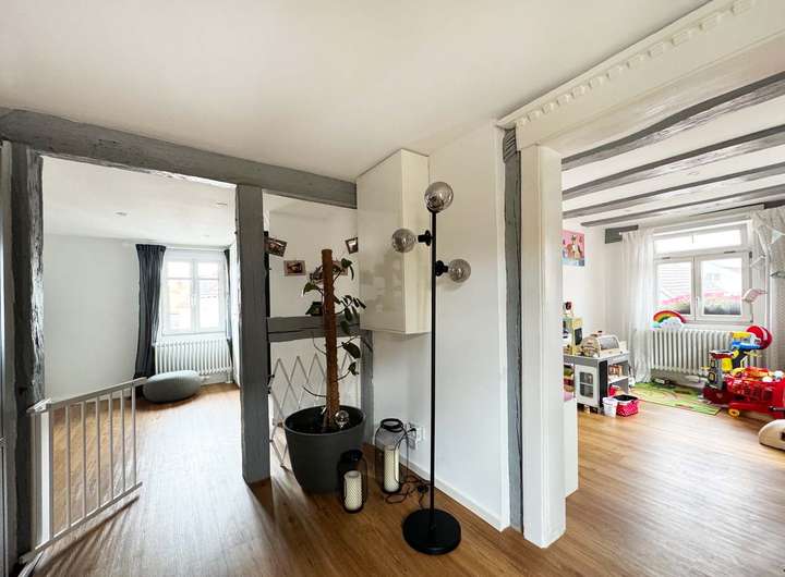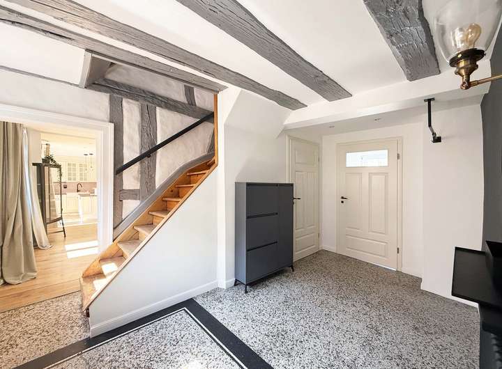 Ausstattung / Modernisierung: • 2021 Sanierung OG (Wände, Elektro, Heizung, Bäder) • 2024 Sanierung Gästezimmer EG • 2012 Pelletheizung • 2010 denkmalschutzkonforme Holzfenster • Dach neu aufgeschlagen Unter- und Zwischensparrendämmung ca. 26cm • Wallbox • Verrohrung und Verkabelung modernisiert • 2 Bäder + Gäste-WC + 2 Außen-WCs • Bodenbeläge: Vinyl, Laminat, Fliesen • Brunnen