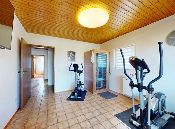 Die Wohnung präsentiert sich in einem gepflegten Zustand und verfügt über 3 Zimmer und eine Küche, die aktuell als Sport- und Saunaraum genutzt wird.