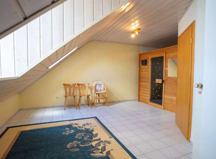 Besonders hervorzuheben sind der sonnige Garten mit gemütlicher Terrasse, ein Gäste-WC sowie der Wellnessbereich inkl. Sauna. Die Wärmeverteilung erfolgt über Heizkörper die über eine neue Gaszentralheizung betrieben werden. Zusätzlich kann der bereits verbaute Kachelofen wieder in Betrieb genommen werden.