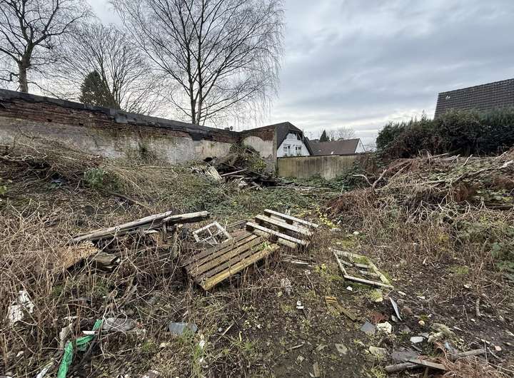 Die Abrissarbeiten des Altbestands sind bereits erfolgt. Laut Bodengutachten muss der Boden jedoch noch bereinigt werden. Vor Ort befindet sich zudem noch etwas Abrissmaterial und Müll, das zu entsorgen ist.