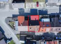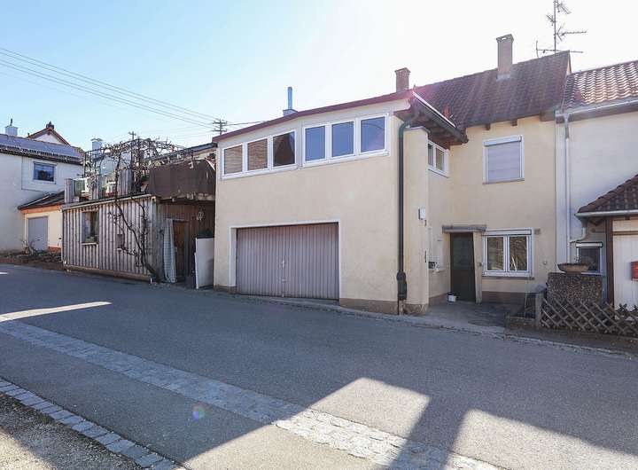 Im Erdgeschoss gelangen Sie über zwei separate Eingänge ins Haus. Hier erwarten Sie eine geräumige Küche mit traditionellem Kachelofen, ein Wohnzimmer, ein Arbeitszimmer sowie ein Badezimmer mit Dusche. Der Zugang zur innenliegenden Garage erfolgt bequem direkt vom Haus aus. Eine Bodentreppe im Flurbereich führt ins Untergeschoss, das einen praktischen Kellerraum zur Lagerung bietet.